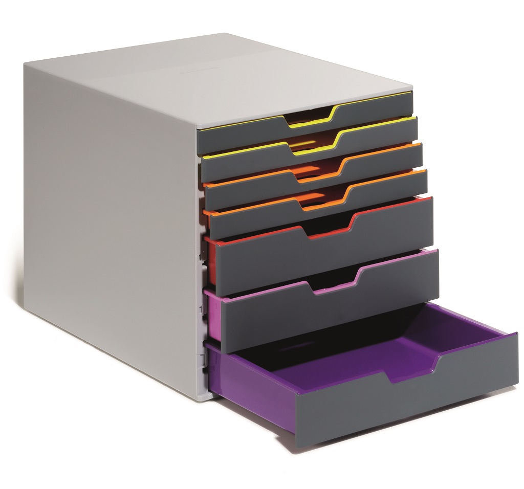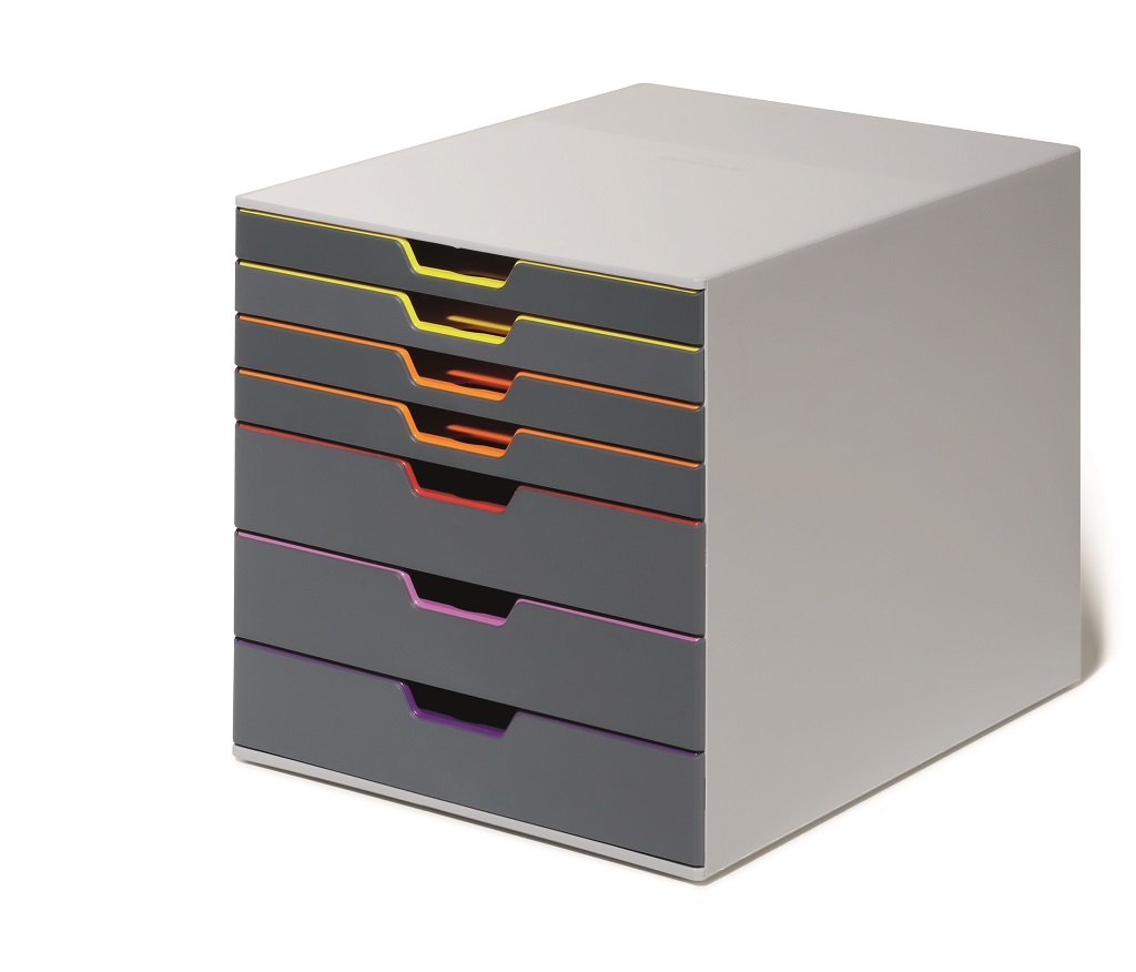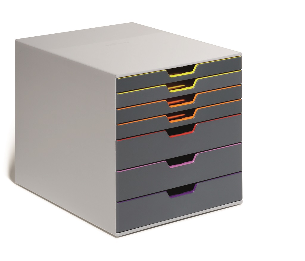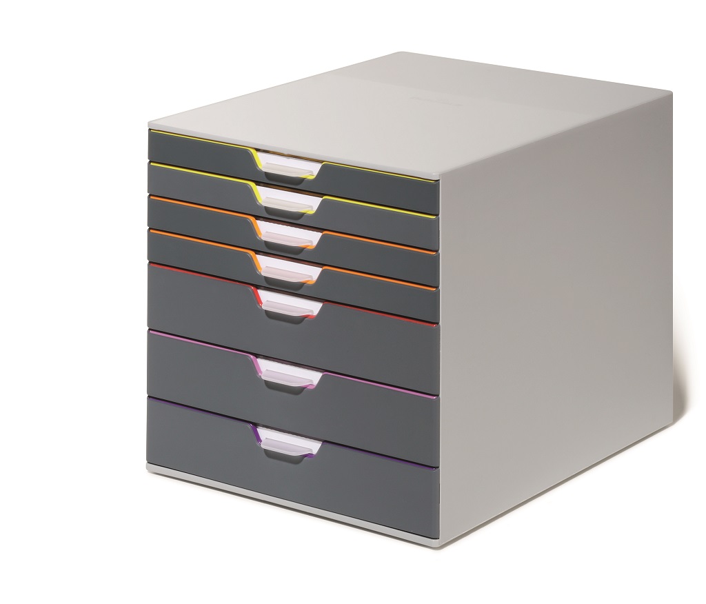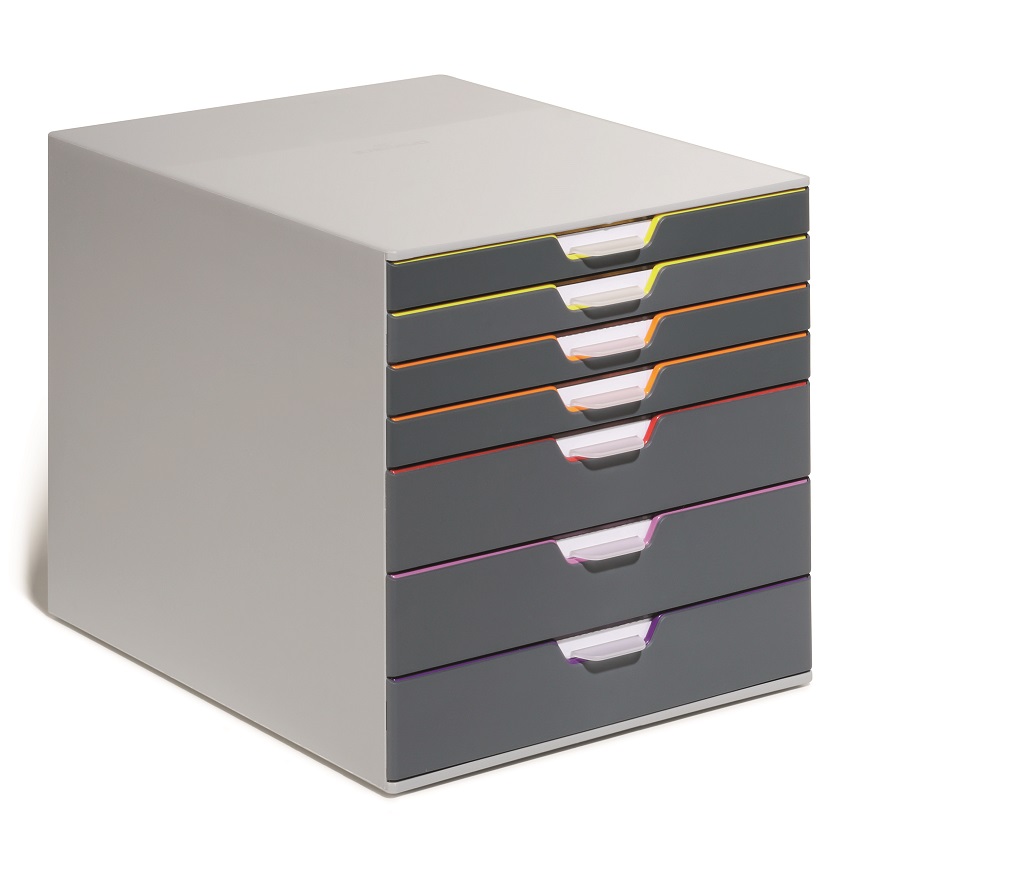 Boxy so 7 zásuvkami s vnútrami dúhových farieb dodajú kancelárii nádych elegancie. Pri ich zatvorení farebné línie iba jemne vystupujú z elegantnej sivej farby, pri otvorení sú žiarivé farby dúhy potešením pre oči. Dodávané s priehľadnými plastovými indexami na označenie obsahu. Boxy sú stohovateľné, zásuvky zabezpečené proti vypadnutiu. Materiál najkvalitnejší ABS plast, tichý a ľahký posun zásuviek, spodná strana s protišmykovou ochranou. Víťaz Product design award 2013. Rozmery (š × v × h) 292 × 280 × 356 mm.