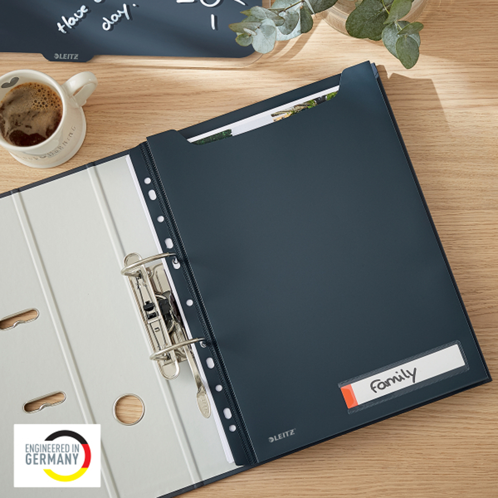 Veľký výrez na prednej strane dosiek uľahčuje vkladanie dokumentov a umožňuje viditeľnosť obsahu