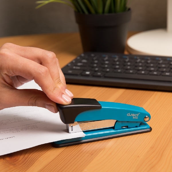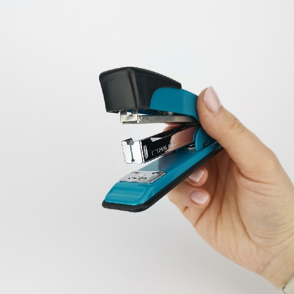 Funkčná kancelárska zošívačka. Užitočný pri každodennej práci, nenahraditeľný pri organizovaní a triedení dokumentov. Kovové puzdro s plastovými protišmykovými podložkami na ramene a základni. Maximálny počet zošitých hárkov: 30 Maximálna hĺbka vloženia hárkov: 50 mm Počet sponiek v zásobníku: 70 – veľkosť sponky: 24/6; 26/6 – dĺžka základne: 11,7cm – záruka 5 rokov – modrá farba.