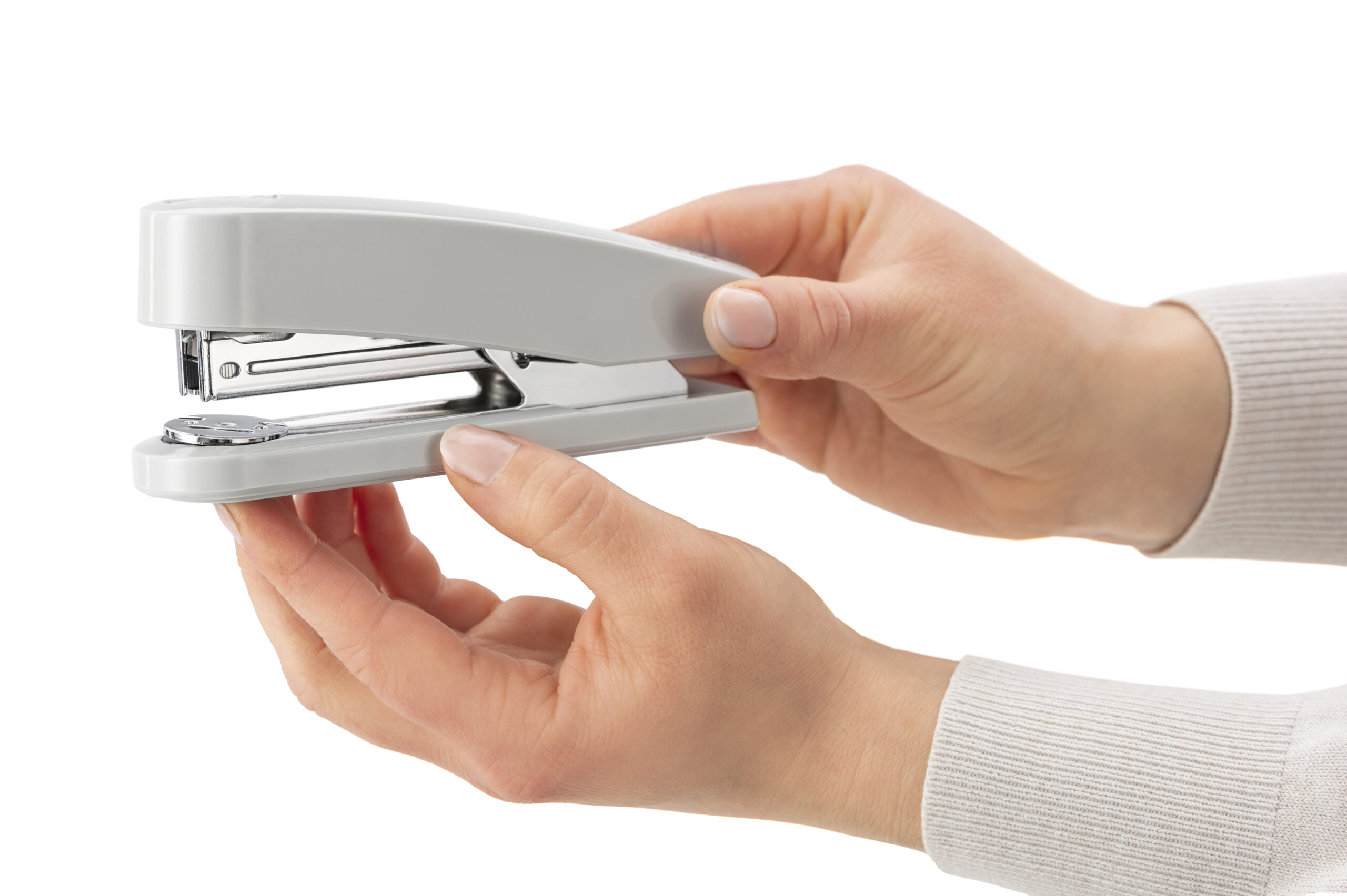 Ľahká zošívačka s kovovým zásobníkom a jednoduchým vedením spiniek. Kapacita náplne 100 spiniek 24/-6 alebo 150 spiniek 26/-6. Hĺbka zošívania 6,5 cm. Hmotnosť 175 g. Záruka 10 rokov.